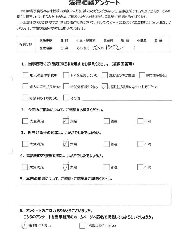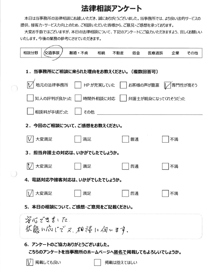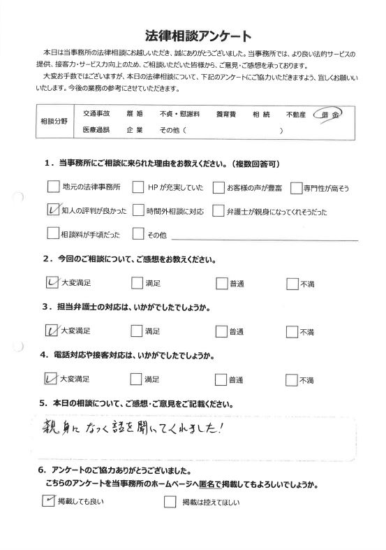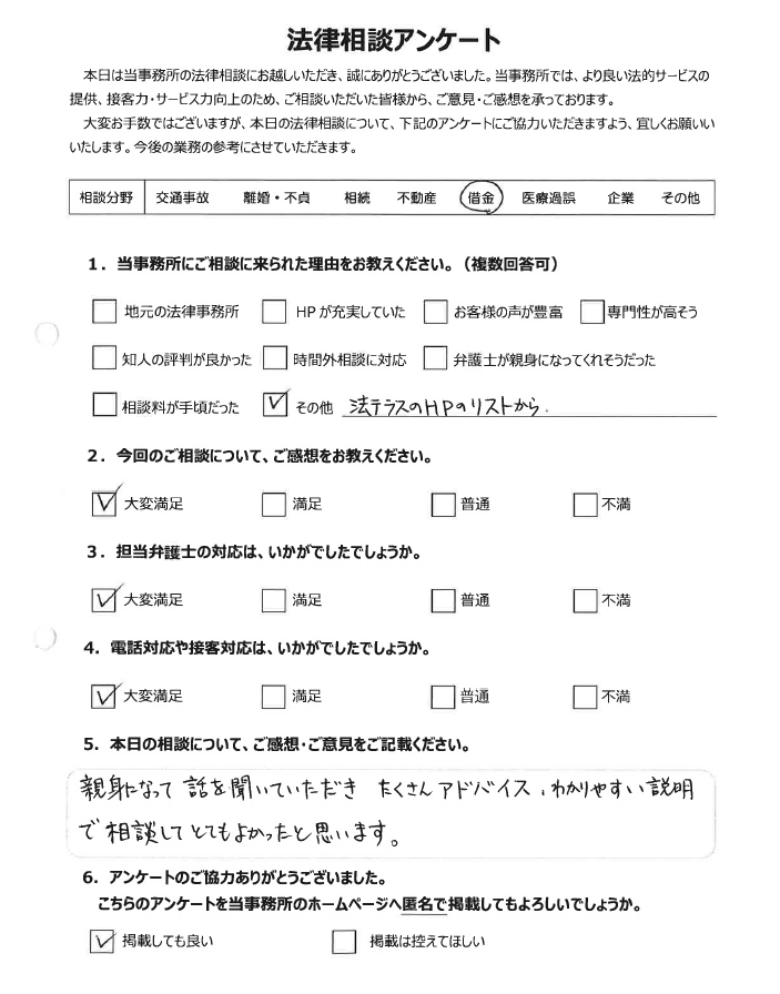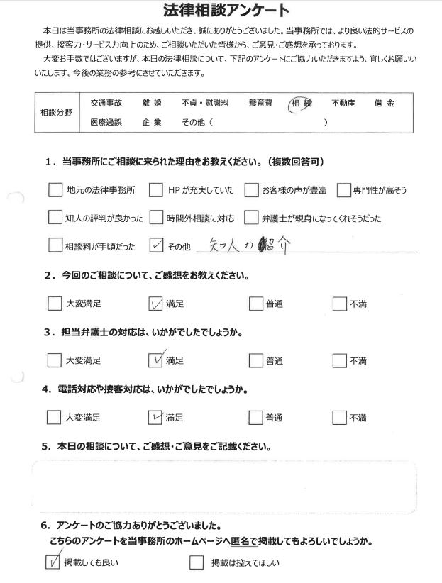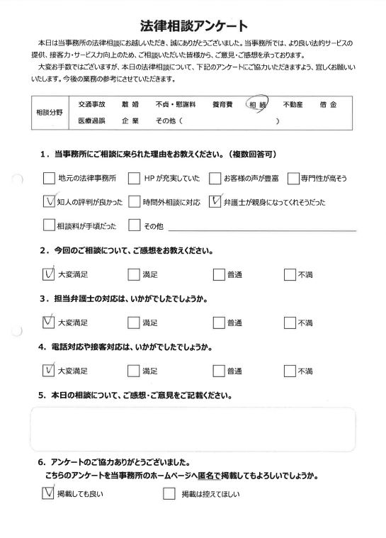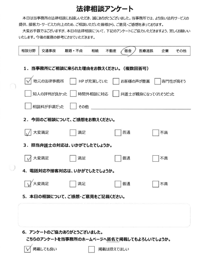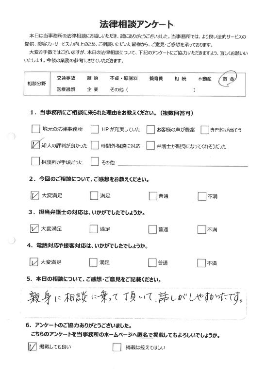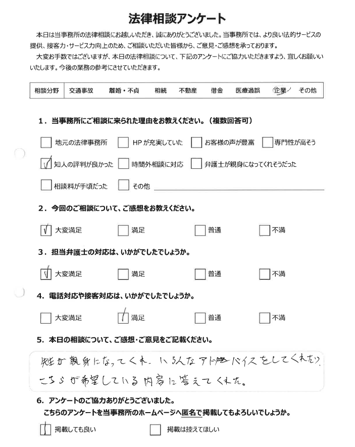 当事務所では高松市の皆さまを中心として、たくさんの方々からご相談をいただいております。ご相談者の皆様さまにご回答いただいたアンケートの一部をこちらでご紹介させていただきます。 是非ご覧くださいませ。 ご来所前のご参考になればと思います。